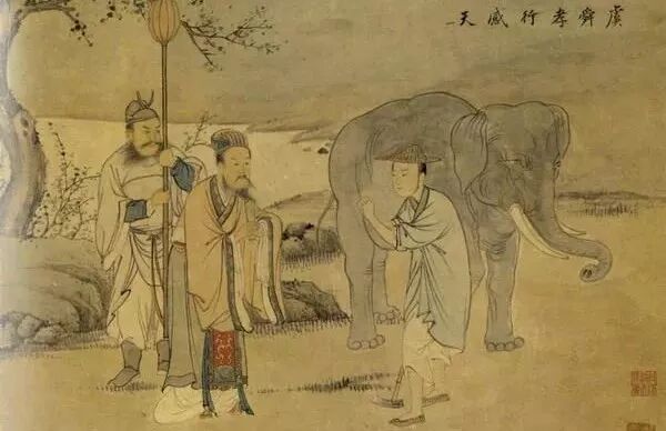 孝感动天 虞舜,瞽瞍之子。性至孝。父顽,母嚣,弟象傲。舜耕于历山,有象为之耕,鸟为之耘。其孝感如此。帝尧闻之,事以九男,妻以二女,遂以天下让焉。
